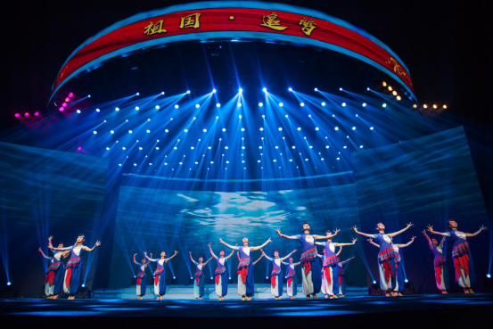 晚会在喜庆欢乐的大型音舞诗《今天是你的生日,我的祖国》中热烈开场。