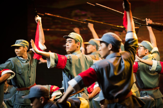 情景剧《草地夜行》、戏曲《血染的旗帜》、歌舞《祝福祖国》将观众拉回到热血的革命年代,演员们通过空翻等高难度动作,艺术演绎了为缔造新中国抛头颅洒热血的英烈故事,深深感染了现场观众。