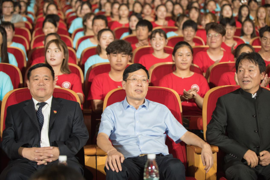 出席晚会的嘉宾有:河南省高校纪工委书记、省教育厅纪检组长、党组成员、河南省教育厅总督学李金川、省教育厅体育卫生艺术教育处处长聂世忠、省教育厅体育卫生艺术教育处副处长李宗英、省文化和旅游厅非遗处副处长祝欣、“不忘初心、牢记使命”主题教育省委高校工委第五巡回指导组组长、中原工学院原党委副书记郭正让及指导组全体成员;中国剧协副主席、省剧协主席、全国人大代表、河南省委委员、河南豫剧院院长、著名表演艺术家李树建,河南省舞蹈家协会主席、秘书长孔夏等有关领导以及教育部艺术教育委员会委员、省音乐家协会副主席、郑州大学音乐学院教授巩伟、郑州工程技术学院宣传部部长吕村等兄弟院校的代表以及媒体界的朋友。