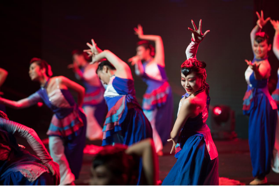 朗诵《千年之约》讲述了古今丝路故事,演员们身着古装将观众带入历史长河之中。歌伴舞《不忘初心》深情讴歌了中国道路,唱出了真挚的家国情怀。舞蹈《红珊瑚》极富创造性,独特的服化道和动作编排营造出时而铿锵时而婉转的舞台艺术效果。