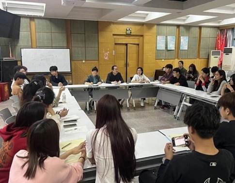 传媒学院院长丁涛结合本院实际情况 ,与 各班班长交心谈话,主动了解学生班级学习 及住宿等情况。