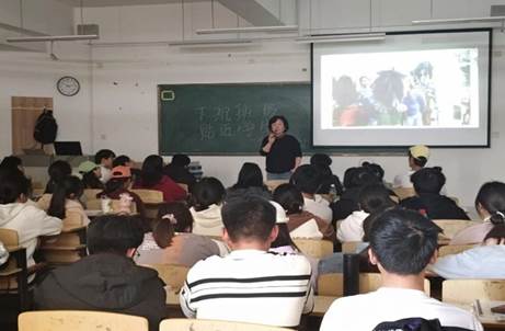 艺术设计学院党总支书记侯丽亚走进学生班会,了解学生学习、生活等情况。