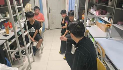 团委副书记王颖宇深入宿舍,与学生进行 沟 通交流。