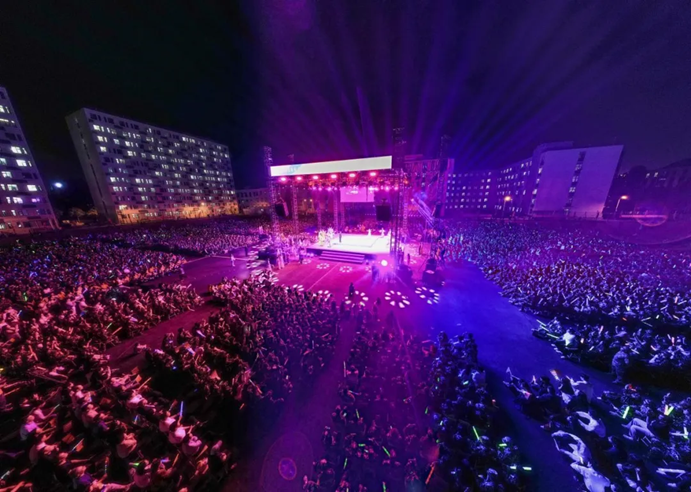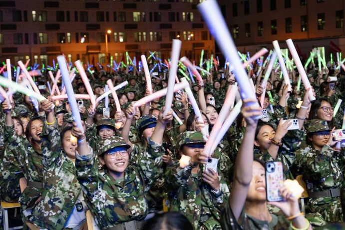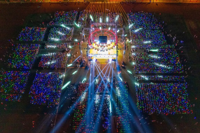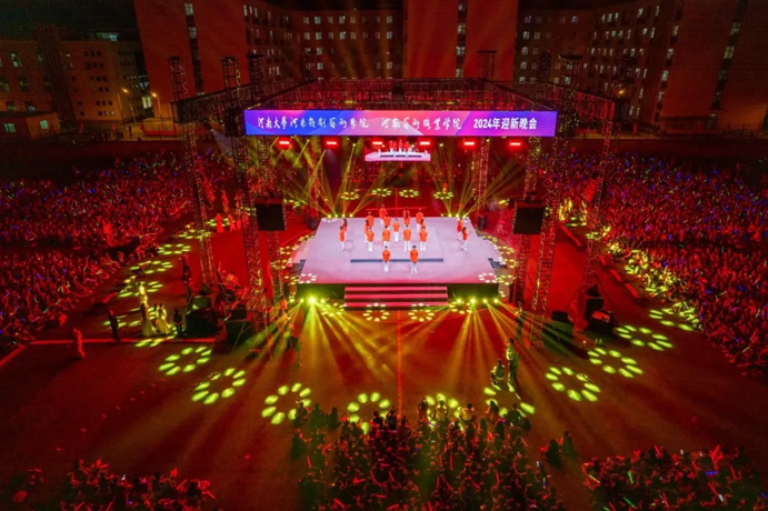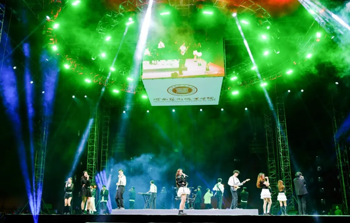 流行音乐串烧环节,同学们合着节拍与乐队歌手共同演唱,青春的旋律回荡在整个操场。荧光闪烁、歌声郎朗,台上与台下融为一体,充满了青年学子的无限活力与激情。