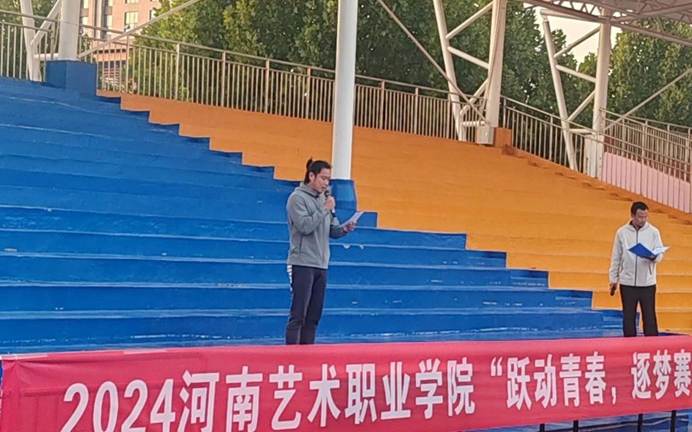 本次运动会负责人公共教学部体育教研室主任穆一哲宣读了运动会的指导思想和重要意义。本次比赛设田径、篮球、羽毛球、乒乓球,共四个项目,运动员是经过各班级和各社团层层筛选出来的优秀选手。
