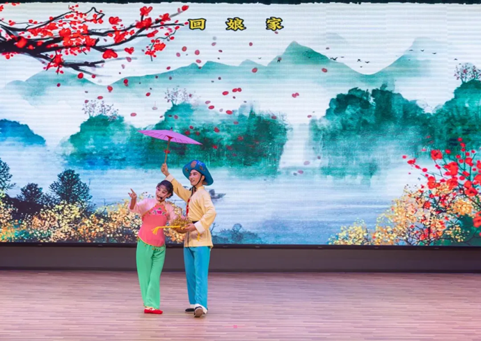 柳琴戏《回娘家》主要讲述的是张三与桂花是一对农家新婚夫妇,新婚不久,张三看到年轻貌美的妻子忙里忙外、操持家务,心生不舍,因此送桂花回娘家让其歇息,二人在途中左顾右盼,互相倾诉爱慕之情。