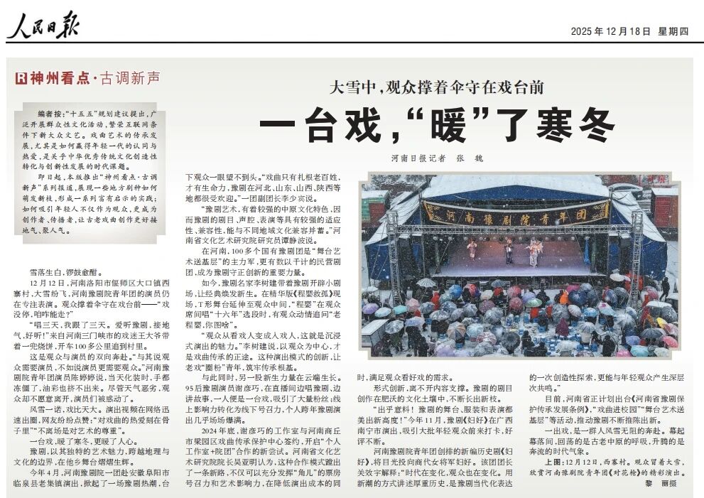 近期,河南豫剧院青年团凭借风雪中坚守演出等动人场景,收获《人民日报》《河南日报》等主流媒体纷纷点赞,其创新发展之路与对观众的赤诚之心引发广泛关注。2026年1月9日,我校特邀杰出校友、河南豫剧一团团长、青年团团长关效宇回到母校,做客“名家讲堂”,为戏曲学院师生带来了一场题为“敬业、学业、事业”的精彩讲座。