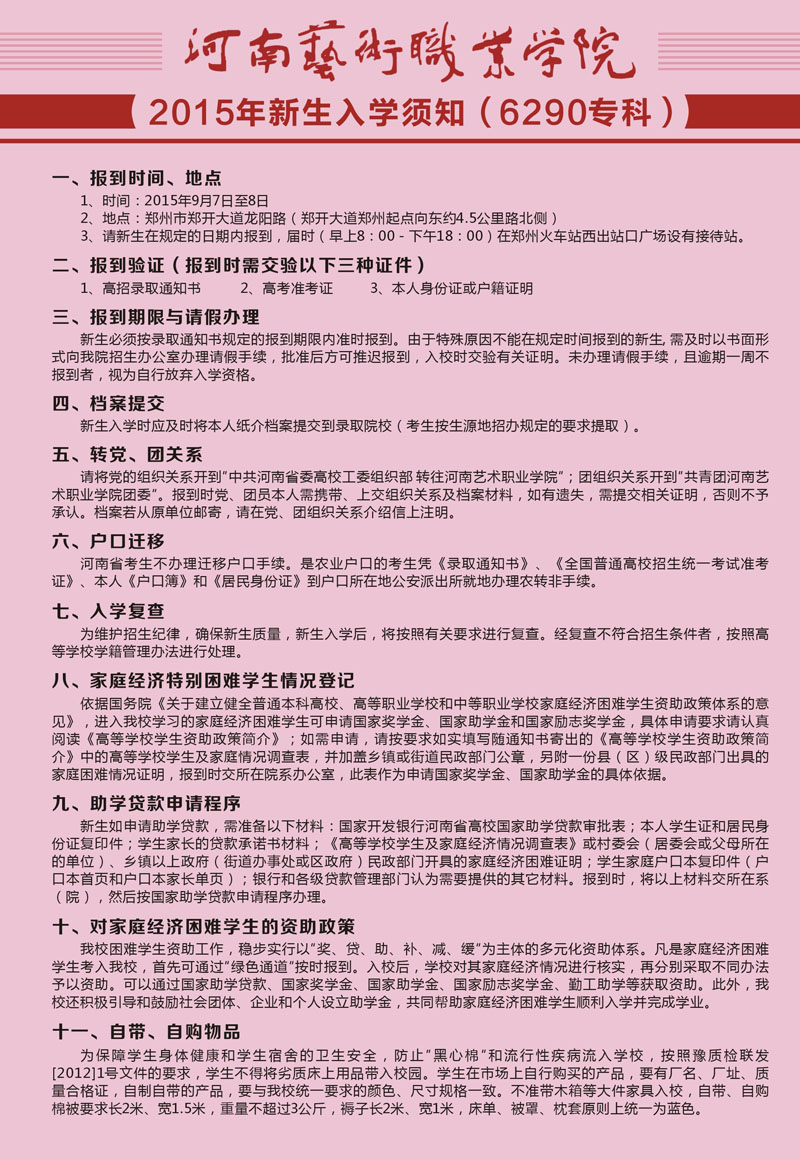 2015年新生入学须知(6290专科)