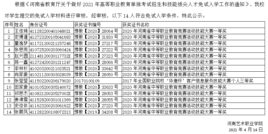 bevictor伟德官网2021年单招免试入学名单公示